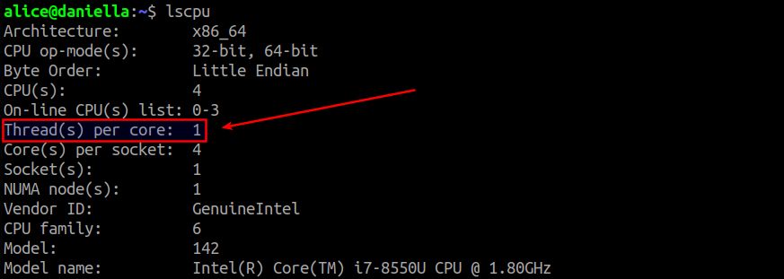 - Look for “Thread(s) per core” and “Core(s) per socket.” This information helps identify how many threads each physical core handles.